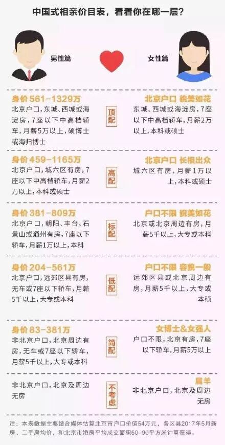 相亲价目表和资产鄙视链是中国人民最热衷的话题之一